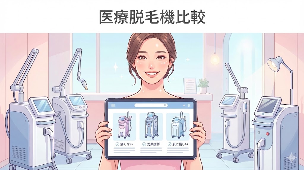 医療脱毛機をお探しの方へ。女性に人気の医療脱毛機を厳選して一覧でご紹介します。痛みが少ない、脱毛効果がある、皮膚を傷つけないなど、それぞれの医療脱毛機の特徴を徹底解説。あなたにぴったりの医療脱毛機を見つけて、理想のつるすべ肌を手に入れましょう。